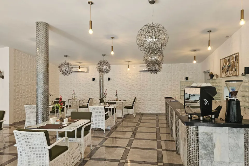 Специальных детских зон в отеле нет, но просторные номера и наличие бассейна делают отдых комфортным для семейных гостей.