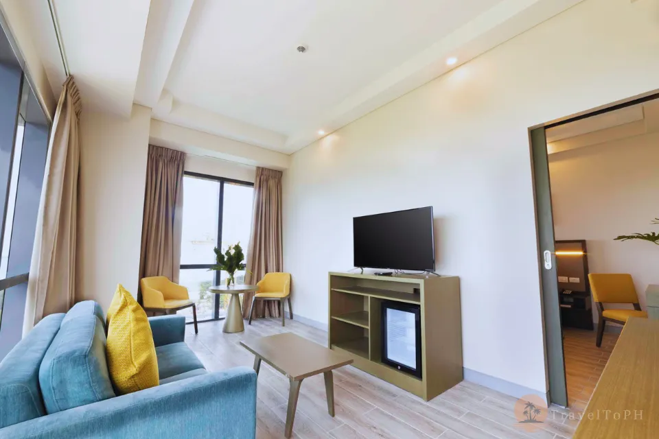 Отель расположен в престижном районе The Mactan Newtown в Лапу-Лапу, всего в 10 минутах ходьбы от Mactan Shrine и храма Магеллана. Международный аэропорт Мактан-Себу находится примерно в 8 км, что обеспечивает быструю дорогу от самолёта до номера. До торговых центров Себу — около 20–30 минут на автомобиле.