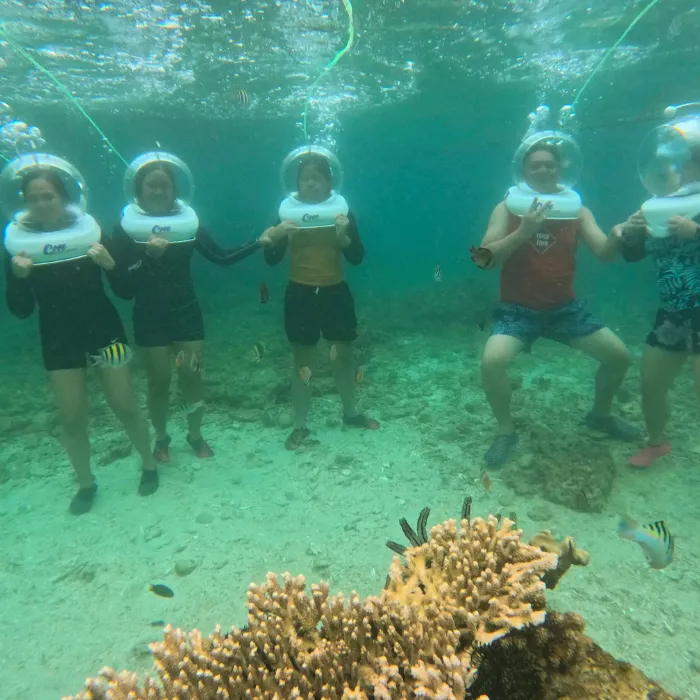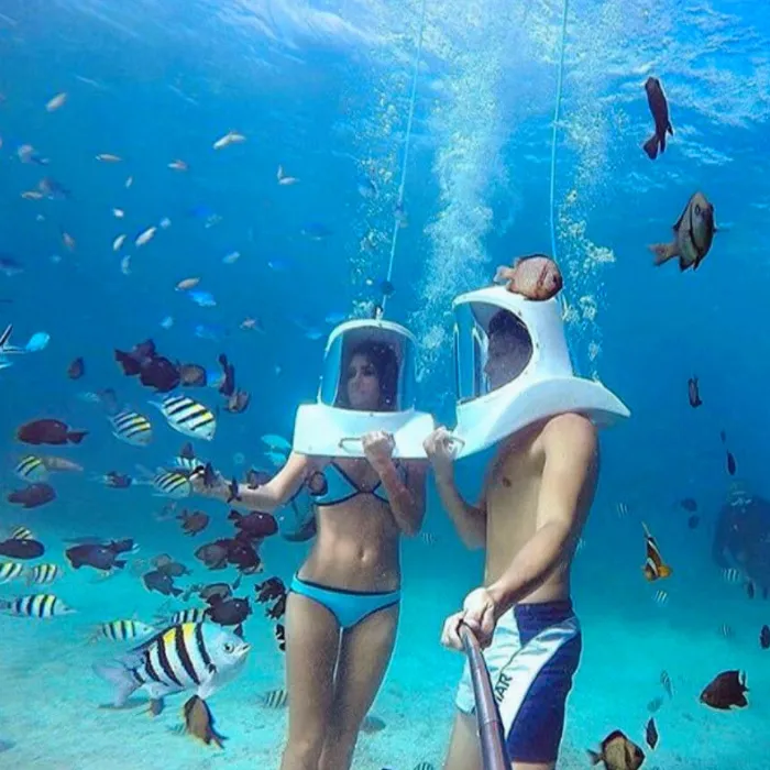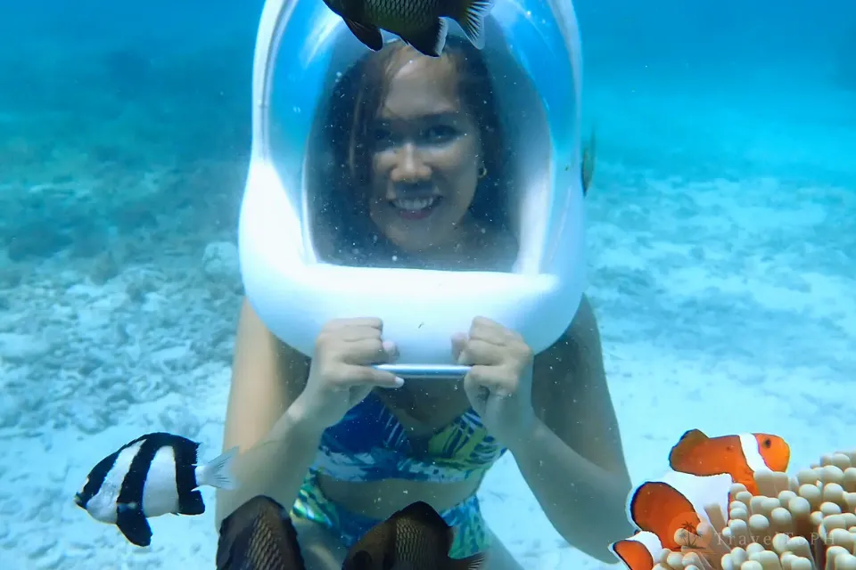 Откройте для себя удивительный подводный мир Боракая без необходимости использовать традиционное дайвинг-оборудование! Дайвинг в шлеме – это безопасный и увлекательный способ насладиться морской жизнью, не имея опыта погружений.