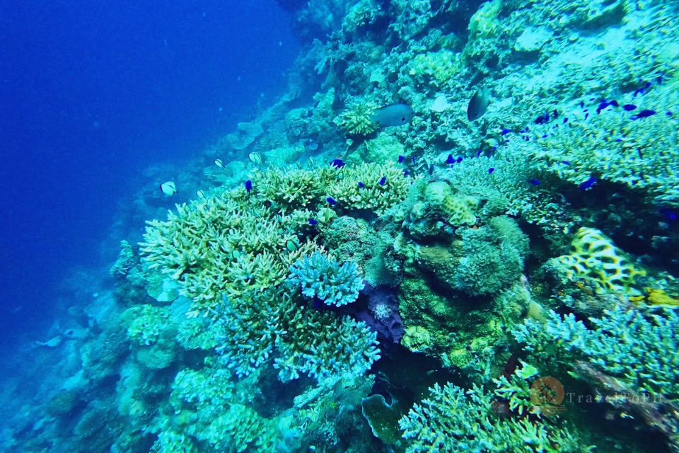 Главная природная ценность рифа — это подводная стена, начинающаяся буквально в нескольких метрах от берега. На глубине 2–5 метров вы уже встретите живописные кораллы, стаи рыб-клоунов, иглобрюхов, морских звезд, черепах и даже скатов. Глубина у стены быстро уходит до 30–40 метров, делая это место популярным у фридайверов. Видимость под водой часто превышает 15 метров, особенно в сухой сезон, а течение — умеренное, но присутствует. Территория рифа относится к морскому заповеднику, и рыболовство здесь запрещено.