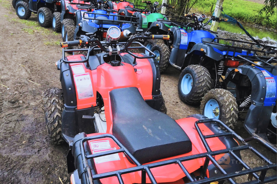 - Квадроциклы предоставляются на месте — одиночные и двухместные модели.