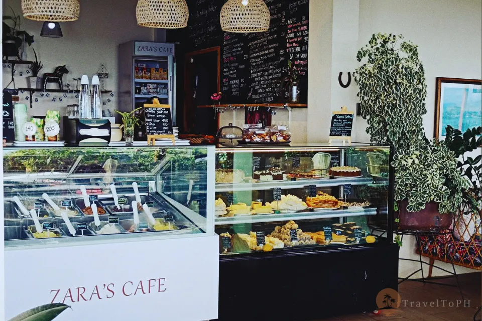 Меню Zaras Café — это баланс между традиционными филиппинскими вкусами и современной кафе-культурой. Здесь можно попробовать кремовую карбонару с местным сыром, рисовые боулы с маринованным цыпленком, панини с домашним соусом, а также десерты, включая leche flan. Особая гордость — кофейные напитки из местных сортов арабики и робусты. Также в меню есть вегетарианские и веганские блюда.