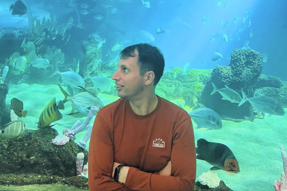 - Океанический тоннель — панорамный туннель, где можно прогуляться среди акул, скатов и экзотических рыб.